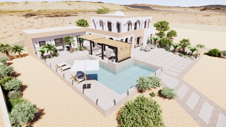 Aménagement et décoration d'un extérieur pour une villa en cours de construction