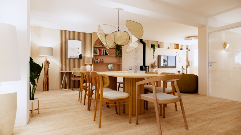Pièce de vie ambiance zen, japandi