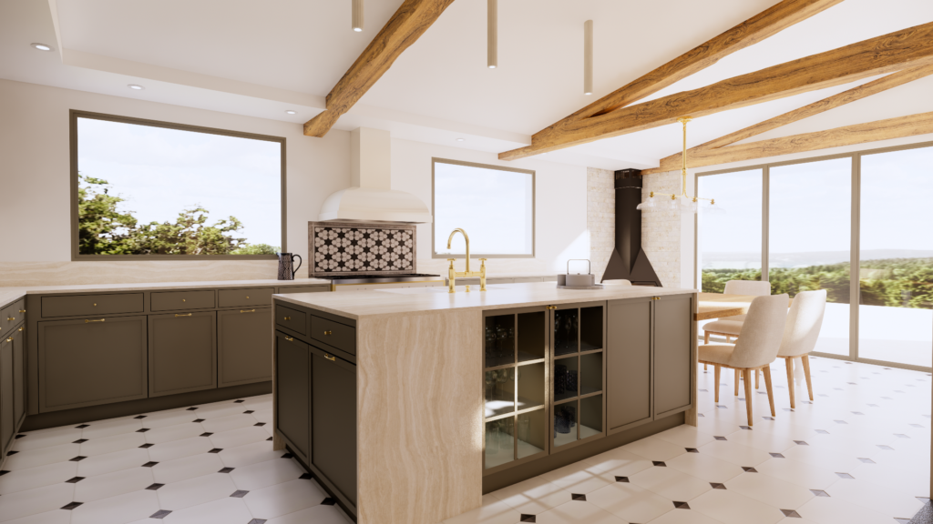 Un besoin d'espace considérable et la partie existante habitable ne pouvait répondre aux besoins des propriétaires. Choix d'une extension pour y implanter la cuisine.