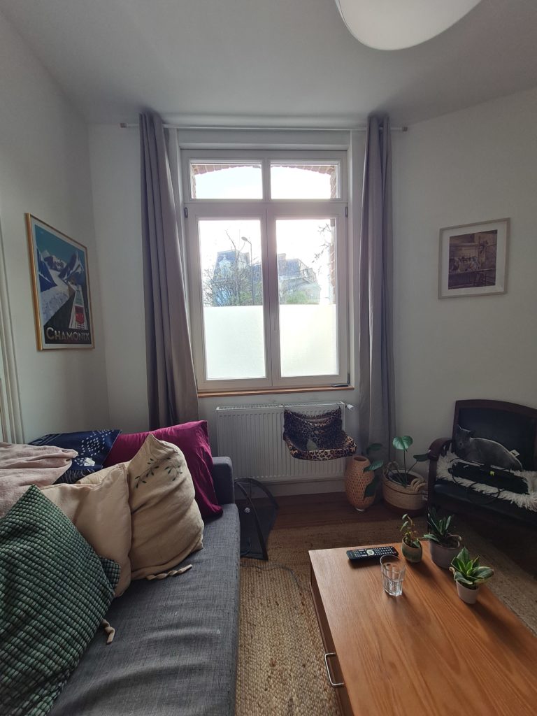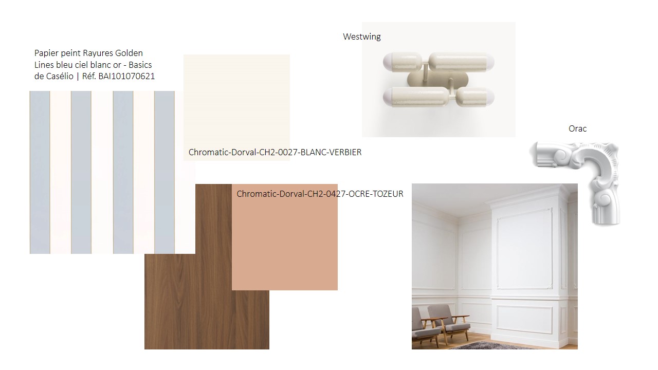 Des tablettes sur-mesure ont été dessinées pour épouser le poteau faisant la séparation entre le salon et la salle à manger. Un salon chaleureux avec son bois noyer et une pièce personnalisée avec ses teintes pastels, bleu, rose, soulignées par de jolies moulures.